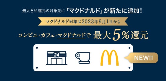 このたび1周年を記念して、9月1日(金)から、ポイントアップショップの対象先に「マクドナルド」を追加しました。今後は、コンビニ・カフェ・マクドナルドでSAISON GOLD Premiumをご利用いただくと、お客様のレベルに応じてポイント還元されます。毎日使えば使うほどおトクになりますので、ぜひご利用ください。