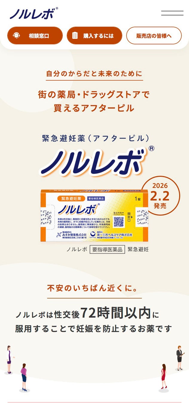 緊急避妊薬(アフターピル)「ノルレボⓇ」2月2日(月)の販売開始に向けてブランドサイトを公開