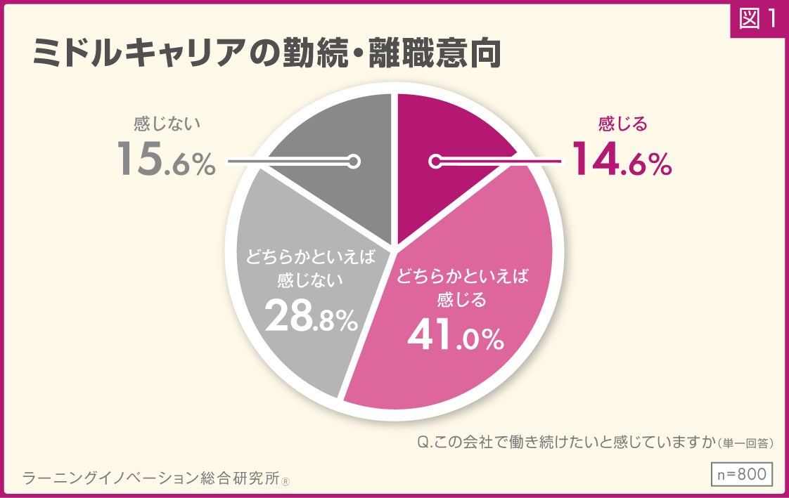 1.「今の会社で働き続けたい」ミドルキャリアは55.6%と、半数以上