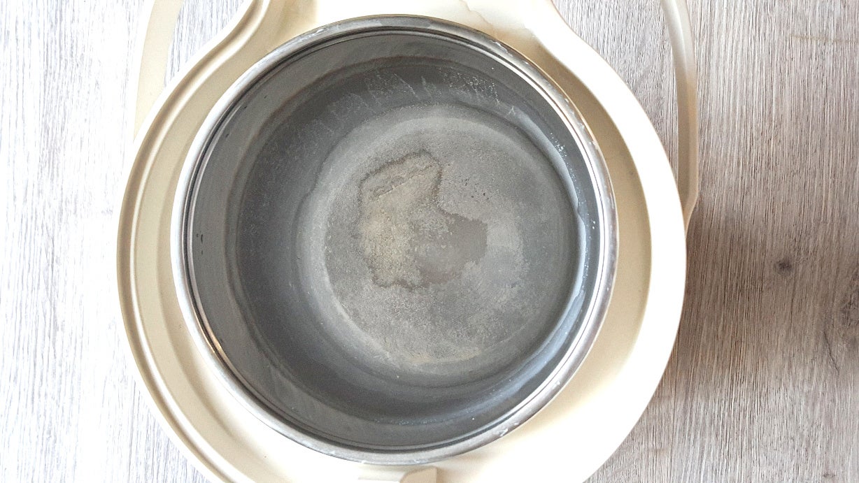 こまめなお手入れは苦手という方におすすめなのが、水道水を沸騰させた蒸気で潤すスチーム式加湿器です。ただし、スチーム式もタンクのお手入れは欠かせません。特に気をつけたいのは、タンクにこびりついた白くて硬いコチラ!