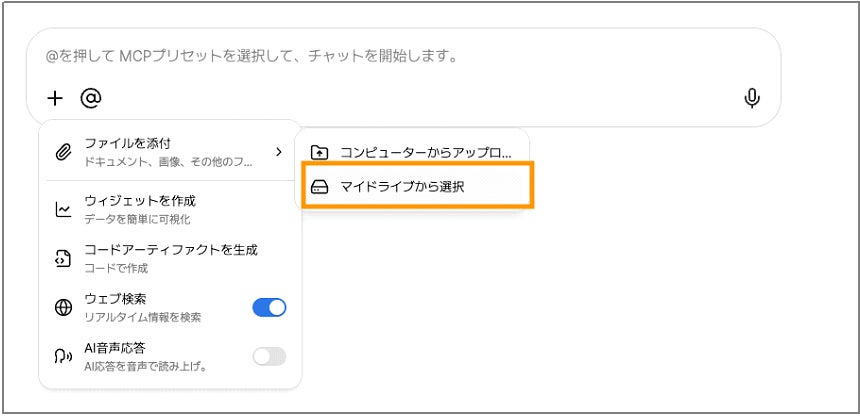 さらに、よく使うスキルを「プリセット」に設定しておけば、チャットを始めるたびにツールを選び直す手間がなくなり、スムーズに会話をスタートできます。