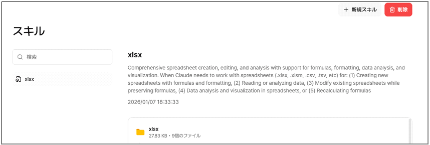業務に合わせた独自の「スキル」を登録することで、AIを自分の業務に最適化できます。