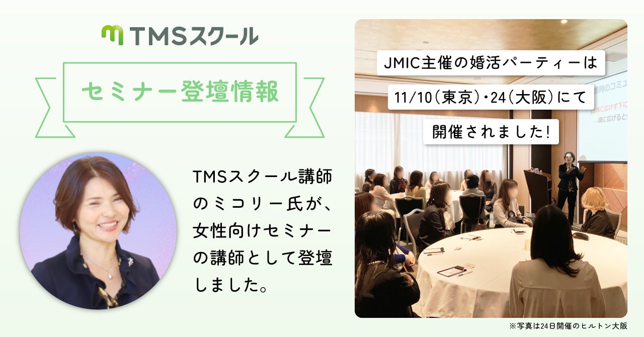 【TMSスクール】講師のミコリー先生がJMIC主催の婚活イベントに登壇!