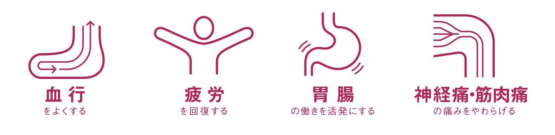 ○ 胃腸の働きを活発にする:温泉のようにポカポカと身体を温めて、胃腸の働きを活発化します。
