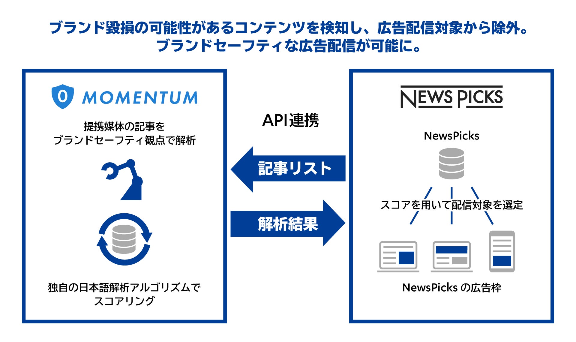 モメンタム社独自の日本語解析技術により、NewsPicksに掲載される記事をスコアリングし、ブランド毀損の可能性があるコンテンツなどを自動的に検知し、広告配信対象から除外することが可能になりました。