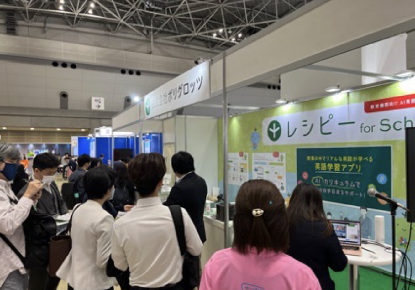 ポリグロッツのブースではAI英語教材『レシピー for School』を展示し、実際に生成AIを活用した英語学習機能を体験していただけます。