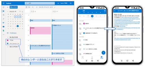「Microsoft Outlook」とのカレンダー連携対応により、プライベートと業務スケジュールを同時に確認可能に