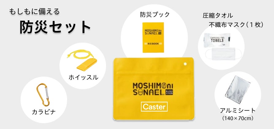 ● ノベルティ : キャスターのロゴ入り防災セット