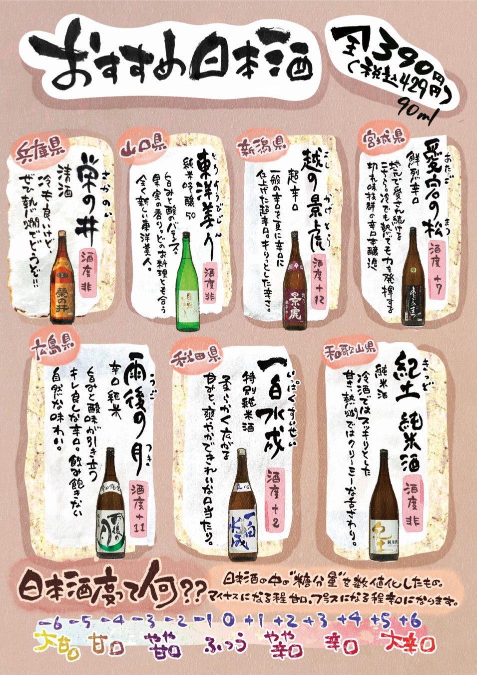 特に日本酒は通常メニューに加え、隠し酒を季節ごとにご用意。