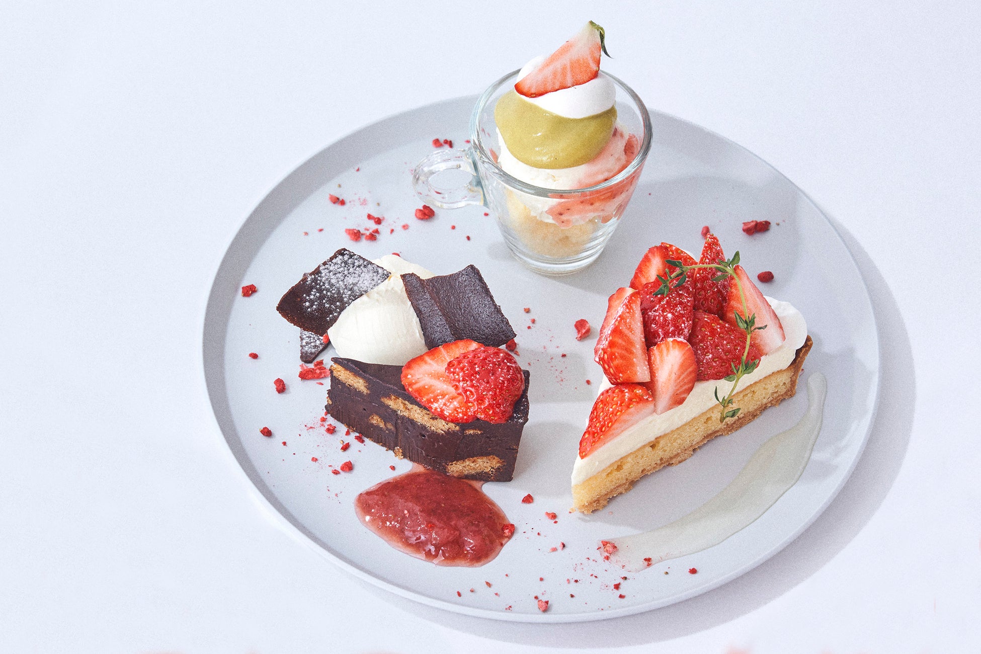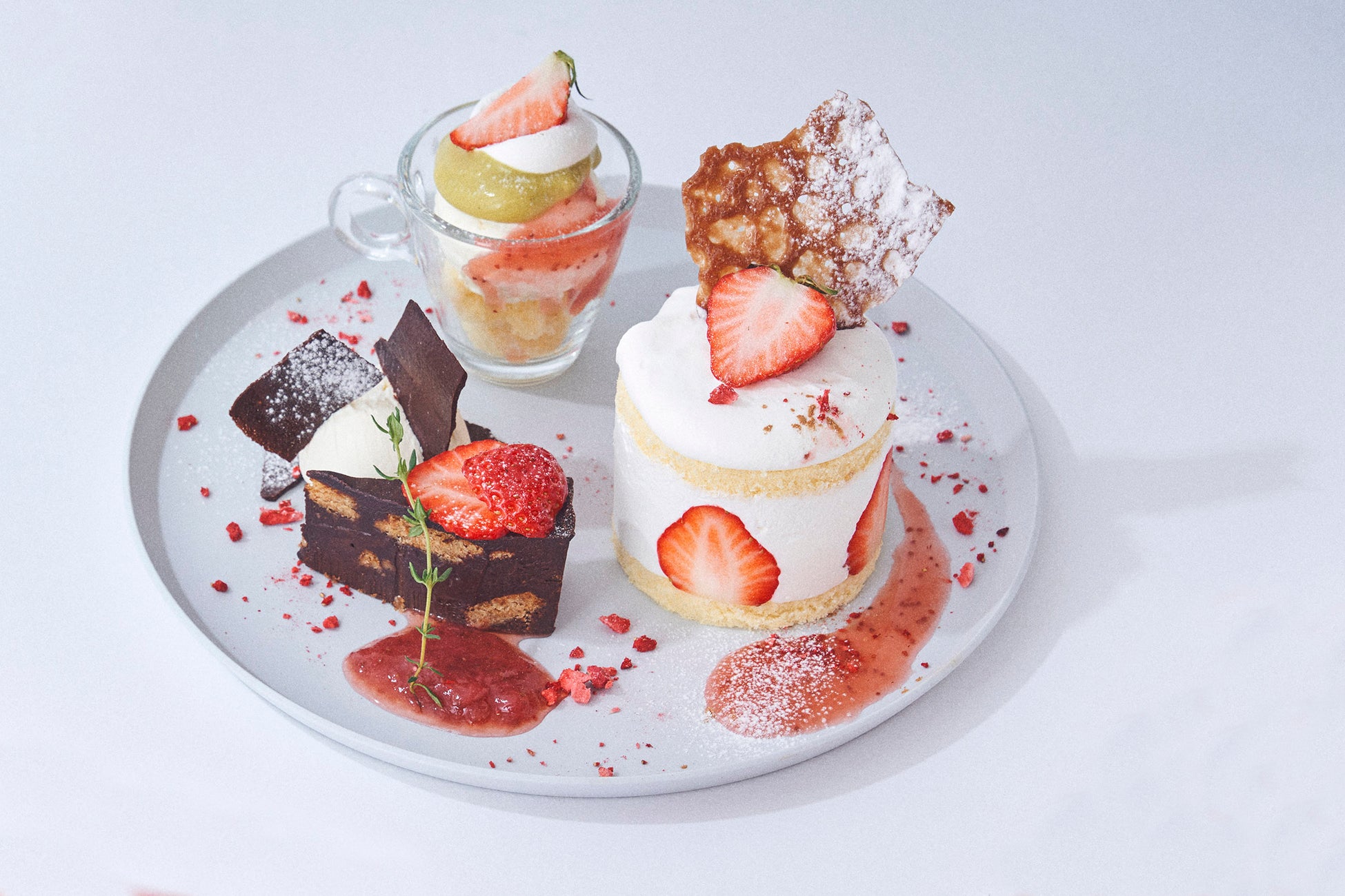 - [デザートプレート]人気いちごデザートが一度に味わえる、いちご尽くしの贅沢デザートプレート。