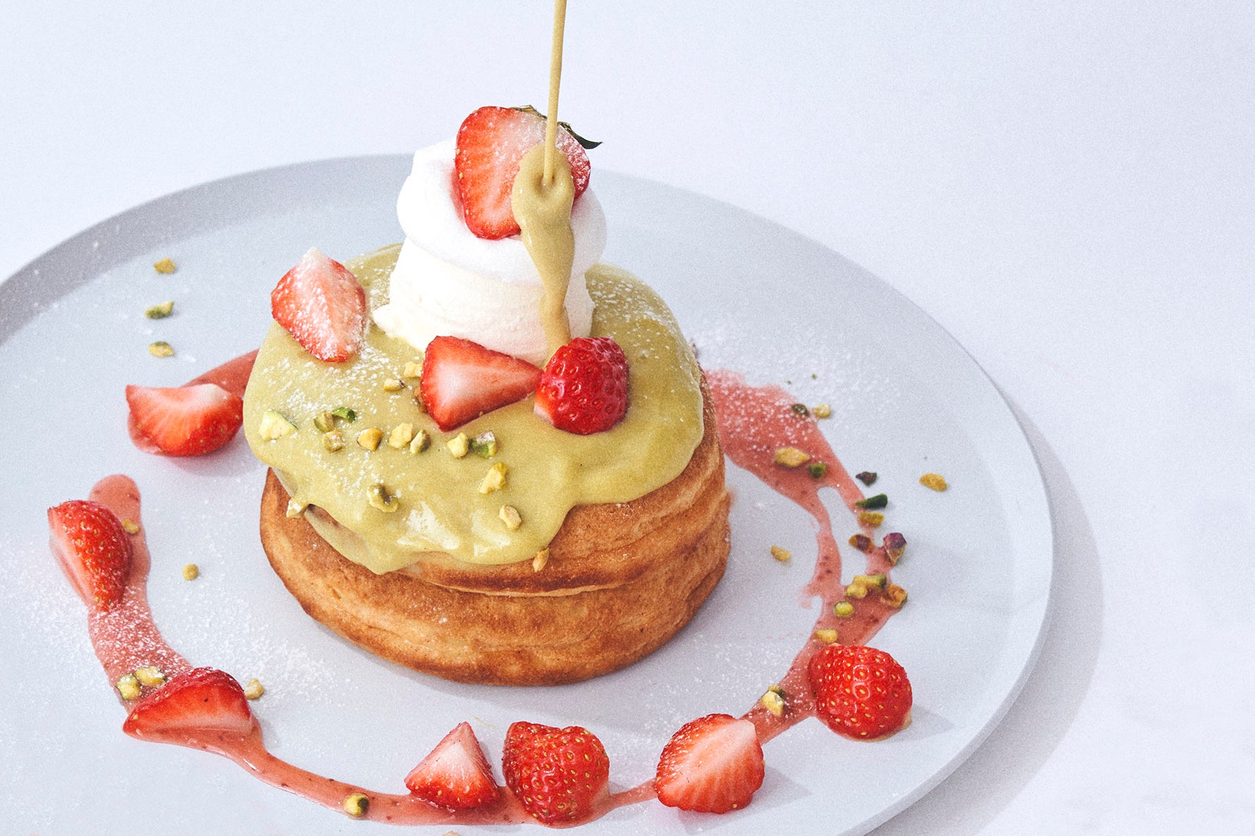 - [パンケーキ]甘酸っぱいいちごと風味豊かなピスタチオの最強コンビが登場!