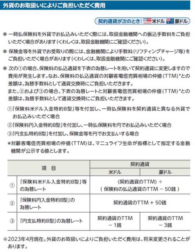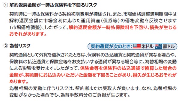 <通貨選択型一時払終身保険『未来につなげる終身保険』 別紙>