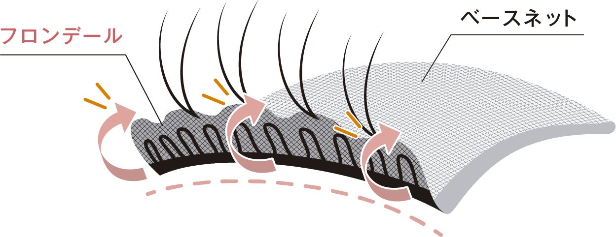 ①新開発のウィッグベース素材が生み出す自然な立ち上がり