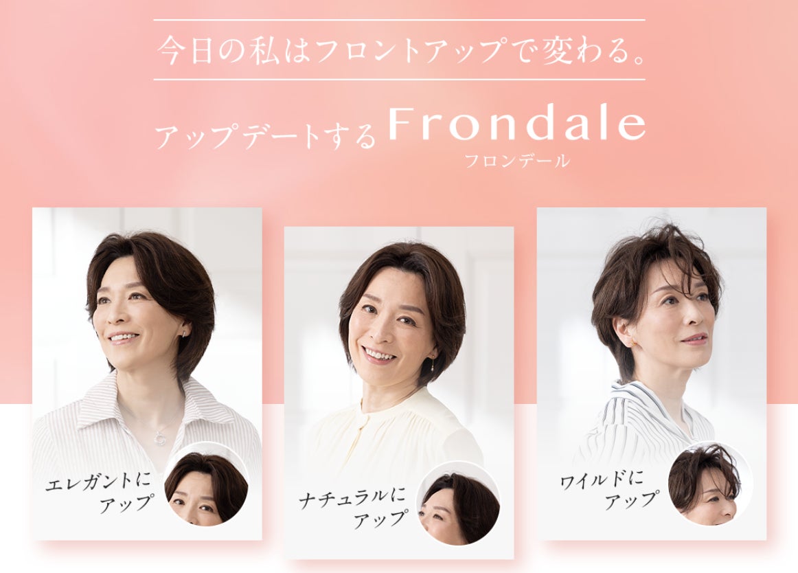新商品「フロンデール」は、ウィッグスタイルにおいてこれまで困難とされてきた、フロントを立ち上げたスタイルを長時間維持することを可能にしたヘアピース(部分用ウィッグ)です。