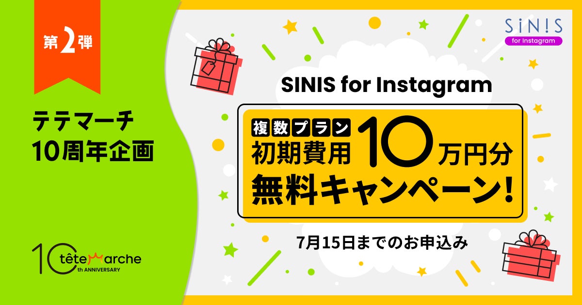 企業向け SNSマーケティング支援を中心としたビジネス展開をするテテマーチ株式会社(本社:目黒区、代表取締役:上田 大介)は、会社設立10周年を記念し、同社が提供するInstagram分析管理ツール「SINIS for Instagram(サイニスフォーインスタグラム)」の複数アカウント一括分析プランにて、通常10万円の初期費用が期間中は無料になるキャンペーンを実施いたします。