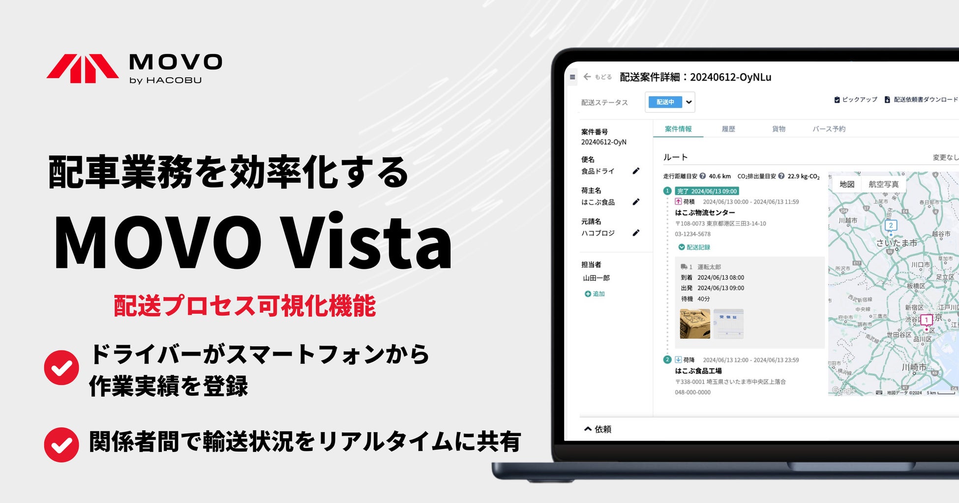 Hacobuの「MOVO Vista」、配送プロセス可視化機能を実装。
