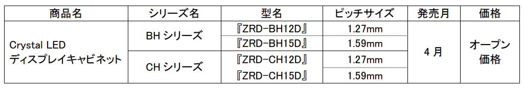 国内のLEDディスプレイ市場は、空間演出やデジタルサイネージでの情報伝達、効果的な映像コミュニケーションなど用途が多様化し、画素ピッチが2mm以下の市場は年率2桁の成長が見込まれています。今回発売する4機種は、発売中のCrystal LEDがもつ高画質性能による圧倒的な臨場感と没入感のある映像表現を継承しながら、設置性と保守性の高さも兼ね備えており、多様化する用途や設置場所にあわせて最適な機種を選べる商品構成としています。