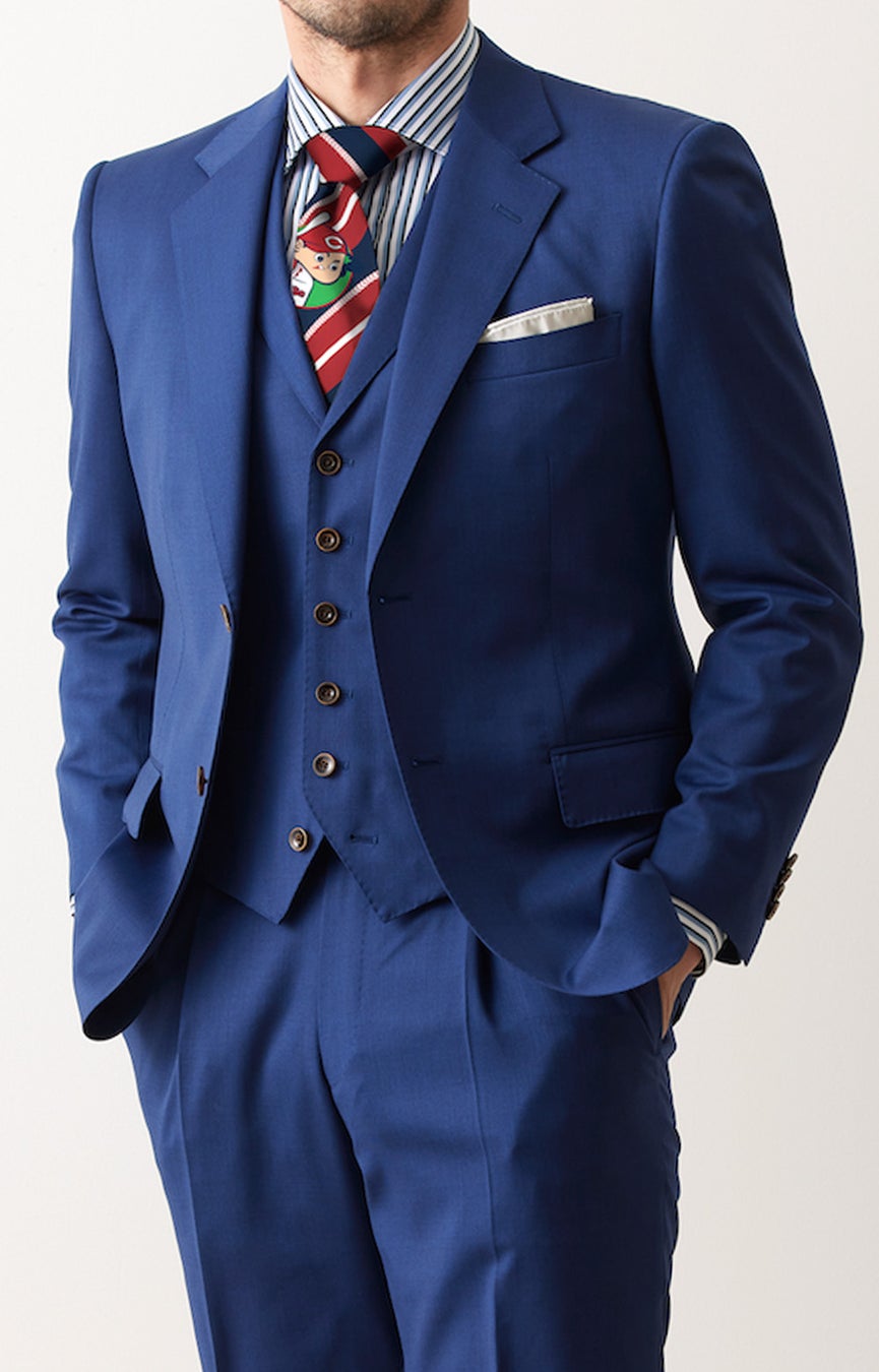 グローバルスタイルのスタイリストが実際に着用しているスーツ・ベストの裏地やネクタイ、全身をレッドスーツでまとめたイメージなどオリジナリティ溢れるコーディネートをご紹介しております。