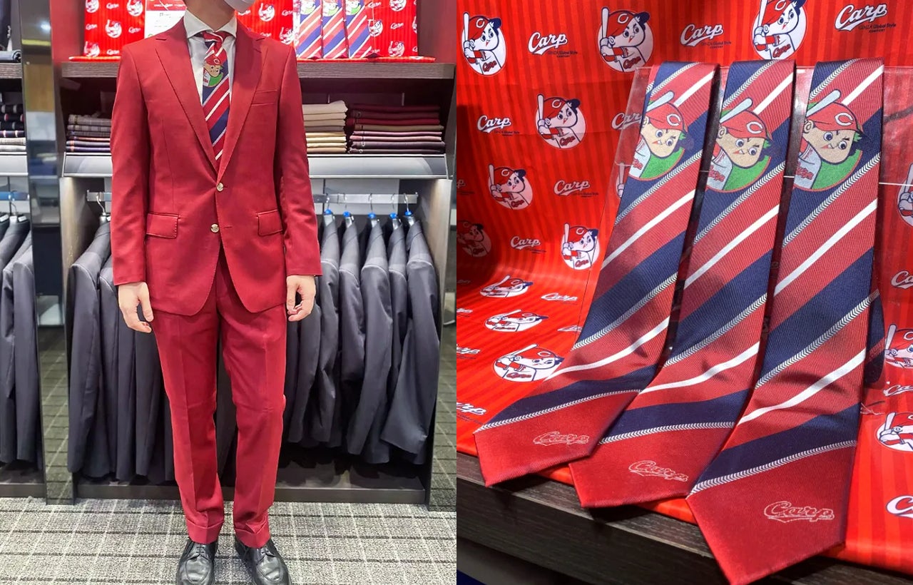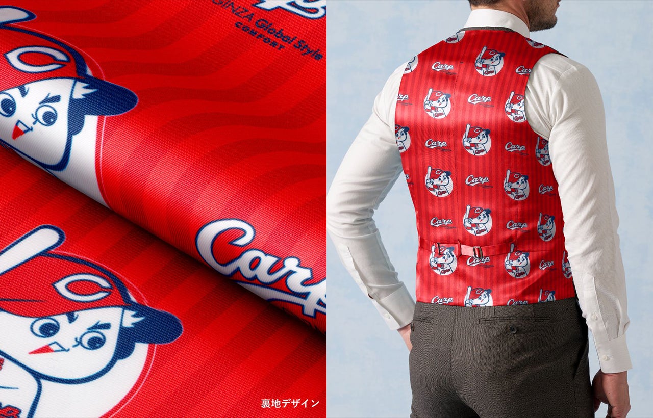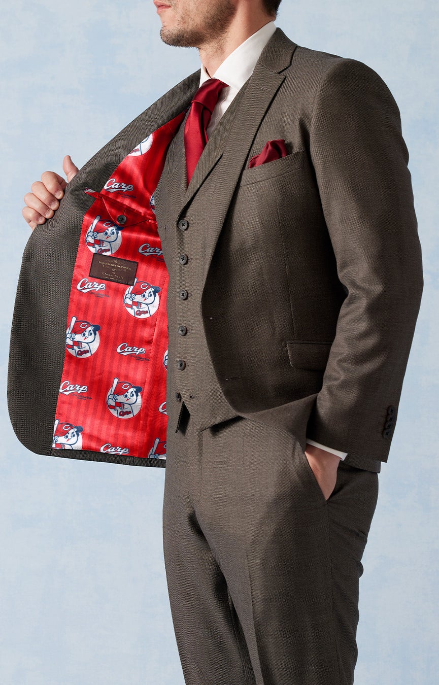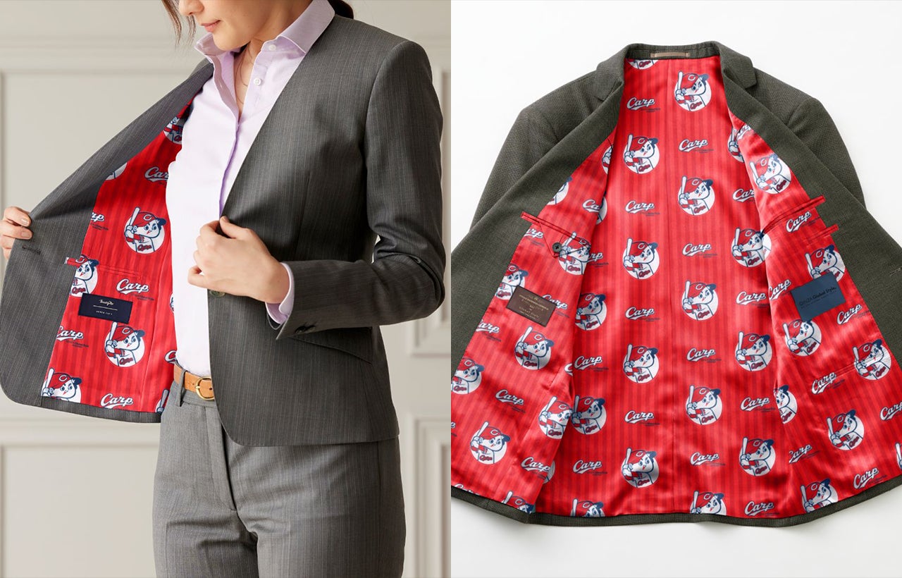 広島東洋カープをモチーフにしたスーツの裏地が登場。