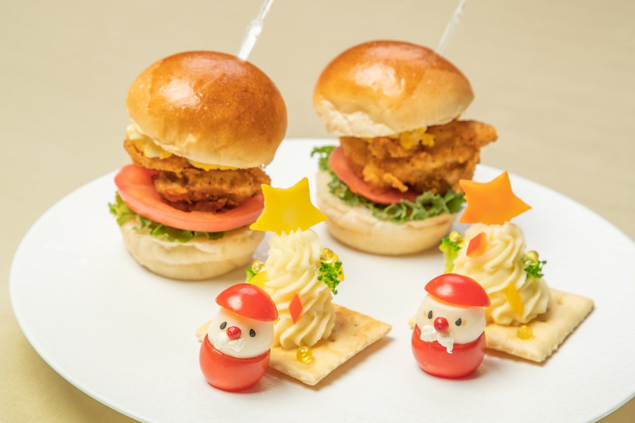| 〈スイーツ〉 ・マチェドニア ・スノーマンマカロン ・パートドフリュイ(洋梨) ・カヌレ ・ツリータルト ・シュトーレン ・スコーン(マスカルポーネ・ベリーソース) ・マロンとカシスのモンブラン 〈フード〉 ・スライダー フライドチキン&エッグ ・サンタクロース・ナ・カプレーゼ ・マッシュポテトツリー トリュフの薫り ・フォアグラのカタラーナとミックスベリー 最中仕立て 〈ドリンク〉 ・紅茶各種(ダージリン/アッサム/アールグレイ/ハーブティー1種/季節の紅茶2種類) ・コーヒー各種(アイスティー/アイスロイヤルミルクティー/ホットコーヒー/アイスコーヒー/カフェオレ/デカフェコーヒー) ※+500円で乾杯酒(スパークリングワイン付) ※仕入れ状況により食材の変更がある可能性がございます。予めご了承ください。 ※紅茶以外にもコーヒー・カフェラテをご用意可能です。 |
