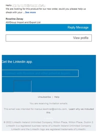 同四半期には、ビジネス向けネットワーキングプラットフォームであるLinkedInを装うフィッシングメールも確認されました。メールはLinkedInからの送信と偽り、件名は「Revise PO June - Order Sheet(6月のPO改訂 – オーダーシート)」としていました。これはレポートと偽った悪意あるリンクをクリックさせるため、受信者を騙すことを目的としています。メール内のフィッシングリンク(現在は無効)は、「hxxps://amazonlbb[.]ajimport[.]com[.]br/china/newcodingLinkedin/index.html」というURLの不審なウェブサイトへと誘導しています。このリンクをクリックすると、アカウントの窃取など悪質な行為を受ける危険があります。