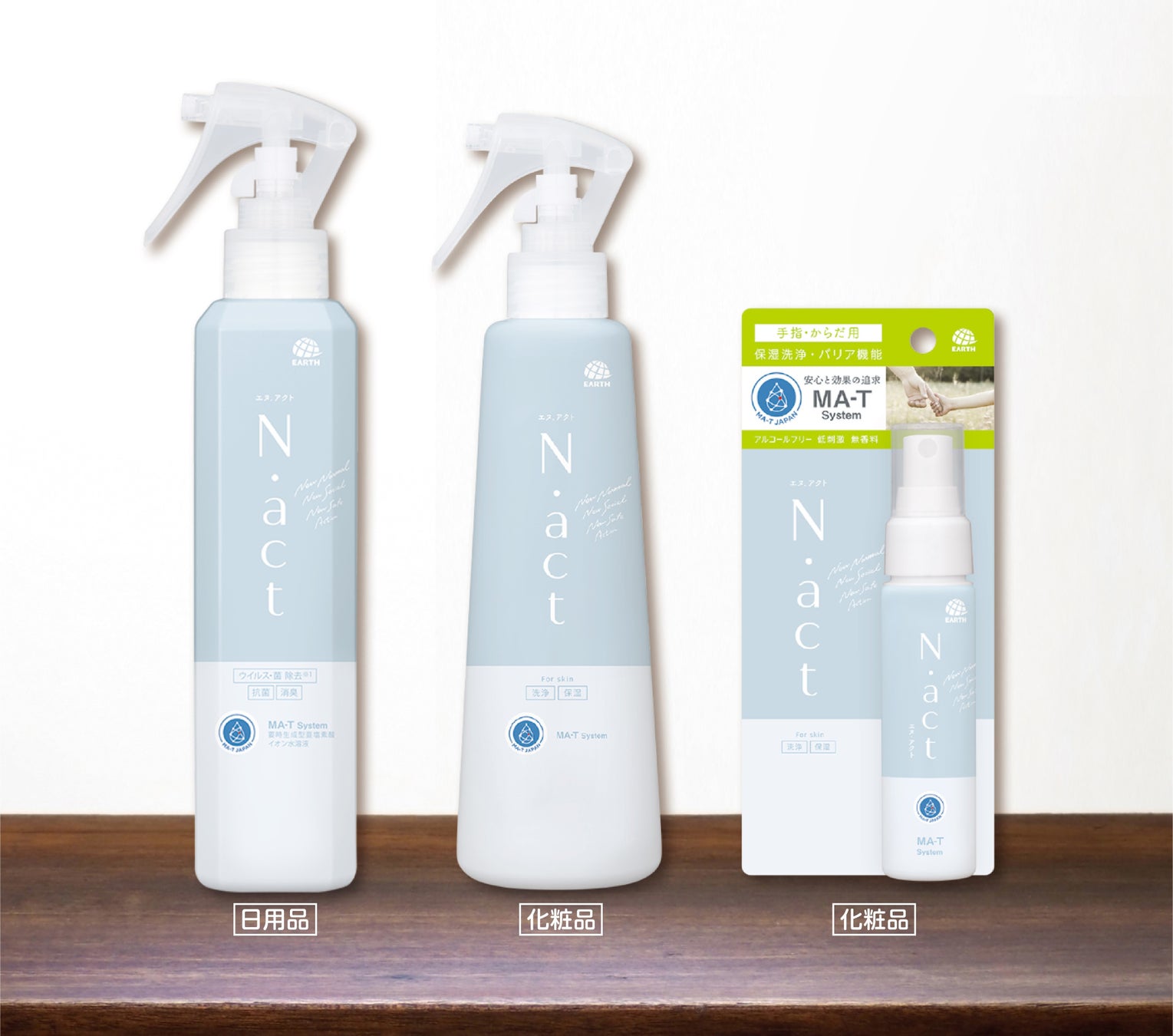 MA-Tシステム®を「店舗で販売して欲しい」といったお客様のご要望に応え、一般家庭向けの製品として『N.act』シリーズを開発しました。全国のドラッグストア、スーパー、ホームセンターにて販売しています。今後もアース製薬は、お客様の生活に寄り添い、安心と効果を追求した『N.act』シリーズの製品を拡充してまいります。