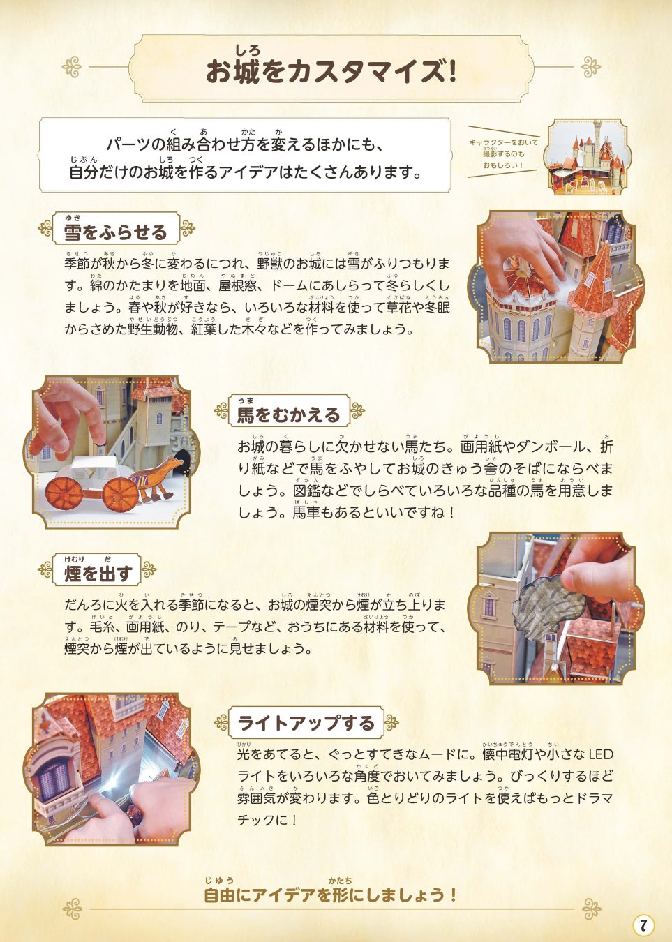 冊子では、お城の機能紹介や組立説明、あらすじ、お城をカスタマイズする方法を紹介。また、塔の位置を変えて、自分ならではのお城にアレンジすることもできます。