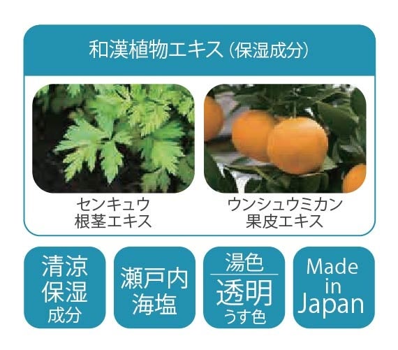 肌をうるおす和漢植物エキス*配合。清涼保湿成分も加わり湯上がり爽快。