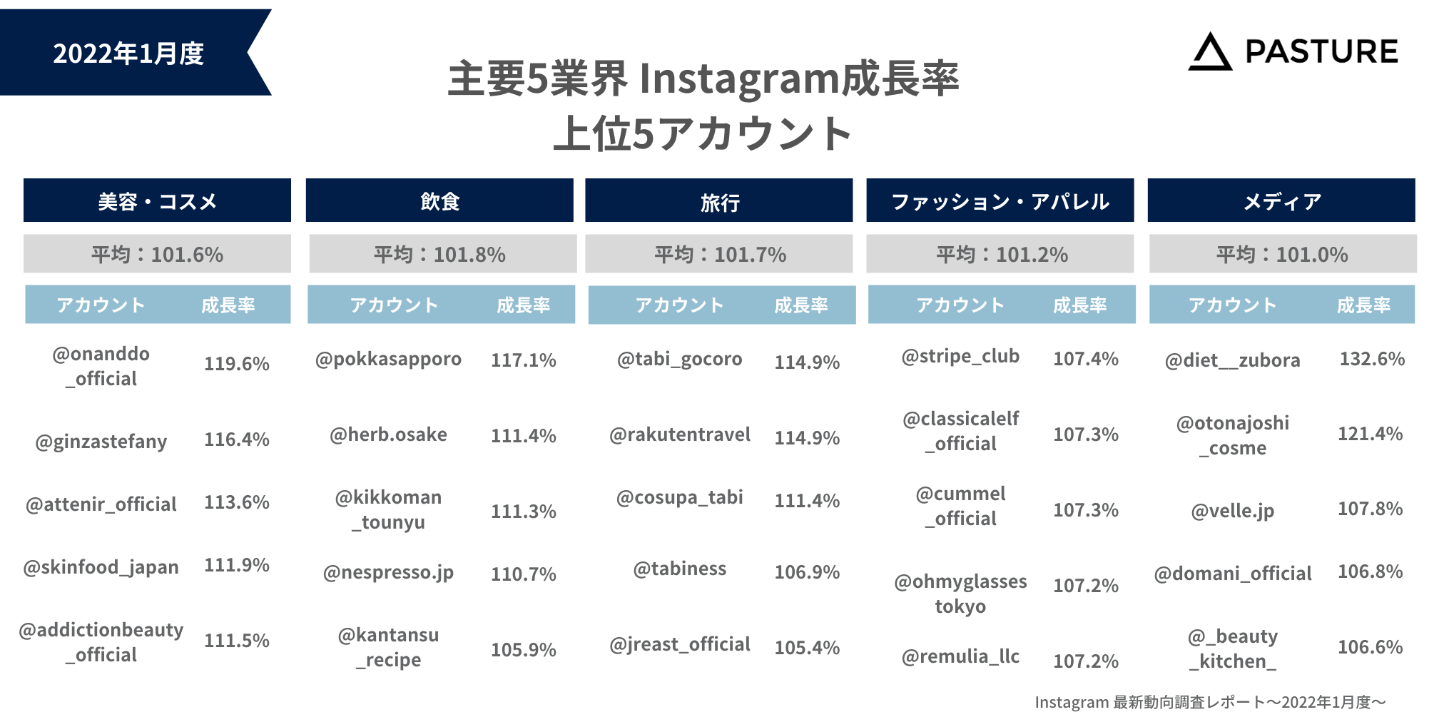 【2022年1月度】主要5業界のInstagramアカウントを調査!Instagram最新動向レポートを公開