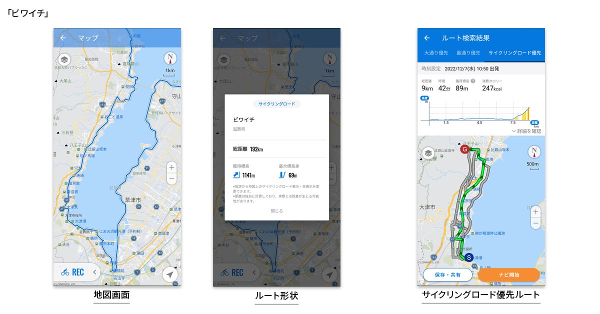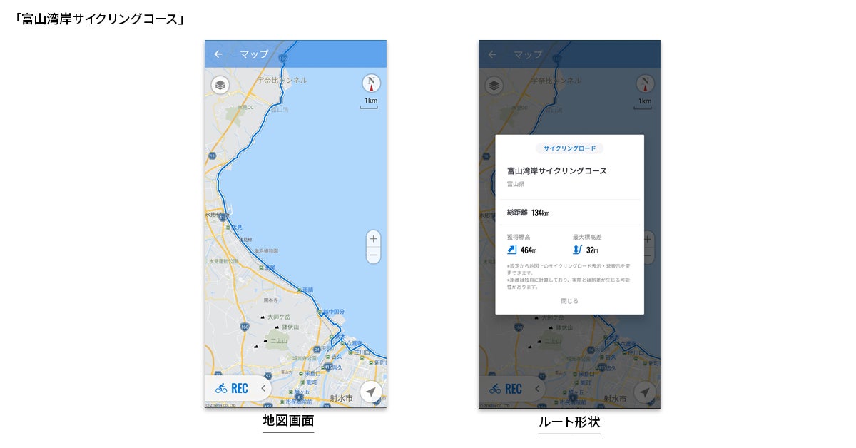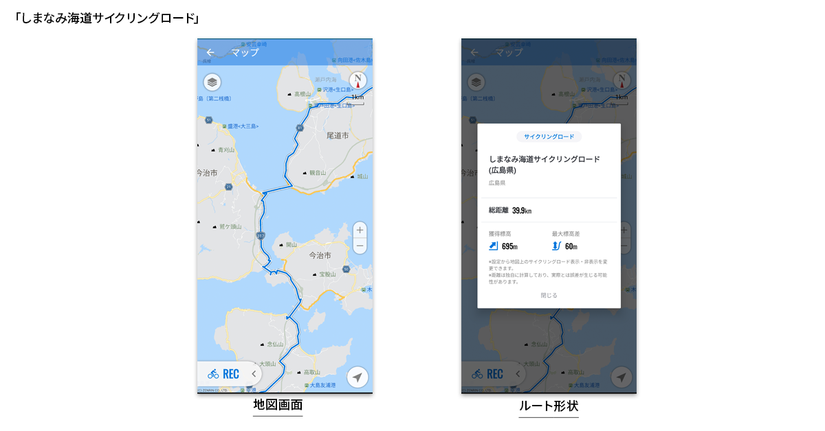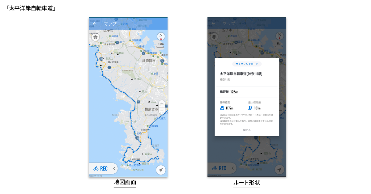 日本を代表する全6ルートを地図上で確認でき、「サイクリングロード優先」ルートで検索可能に