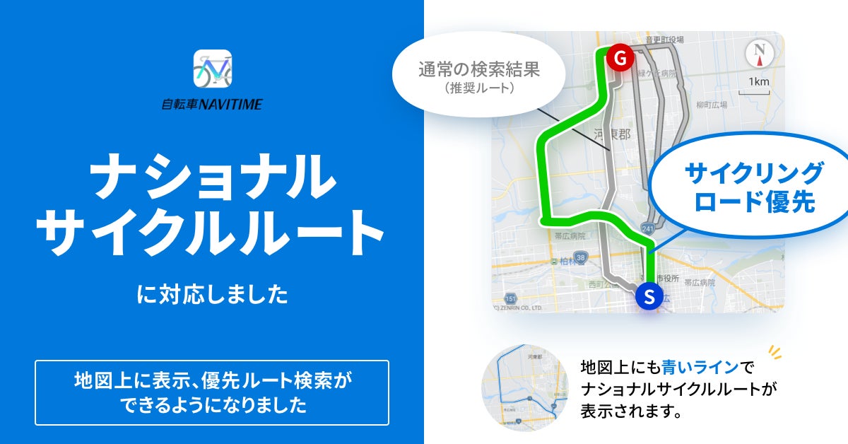 株式会社ナビタイムジャパン(代表取締役社長:大西 啓介、本社:東京都港区)は、2022年12月13日(火)より、スマホ向け自転車専用ナビゲーションアプリ『自転車NAVITIME』にて、国土交通省の公開情報を活用し、ナショナルサイクルルートの検索を可能にします。