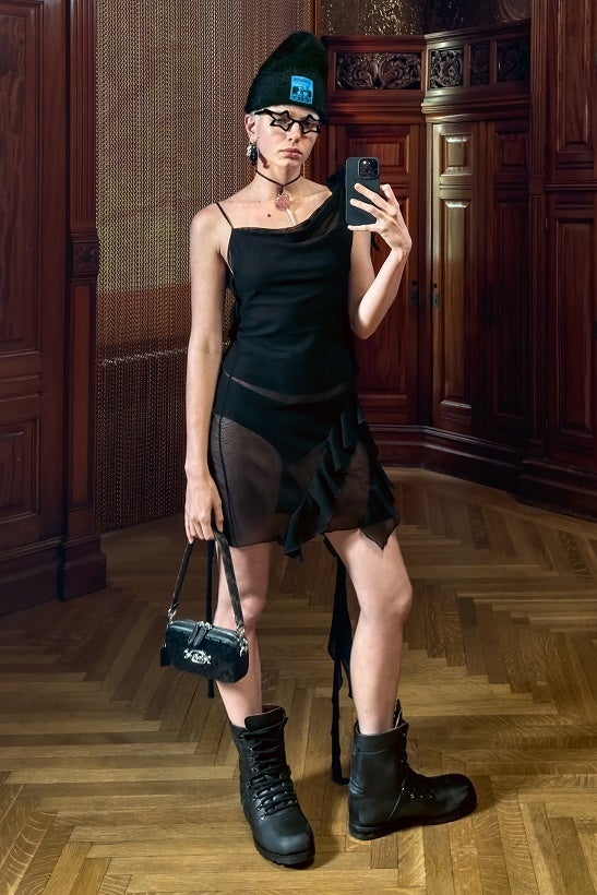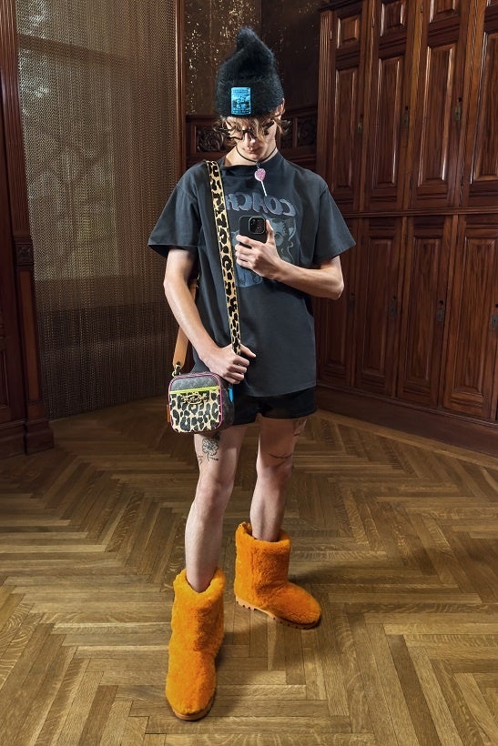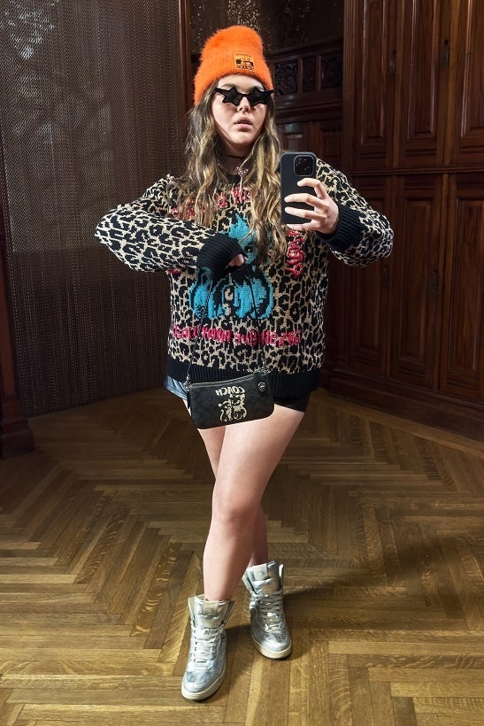 WINTER 2023コレクションでは、FALLで個性を物語るプラットフォームとしてヘリテージピースのストーリーを構築したことを受け、レザーウェアやアンダーグラウンドパーティーでの装いをミックスしたプレイフルなマッシュアップアイテム、再構築または再利用された素材で生まれ変わった新作が登場します。そこでは、レザーのバイカージャケットやシアリングジャケットというアメリカンファッションの原型が、Tシャツ、スウェットシャツ、バッグと並び、レイヴカルチャーを想起させるユースフルなアシッドグラフィックスとエレクトリックカラーで命が吹き込まれています。そしてアーカイブよりボニー・カシンのレオパードプリントがモダンに再解釈されています。コレクションにはまた、ハートのエンブロイダリーを施したシアーなチュールやスパンコールで仕上げられたグリッターのデコレーションにより、ロマンティックとグランジの感性を融合させた ”リトルブラックドレス” もそろいます。