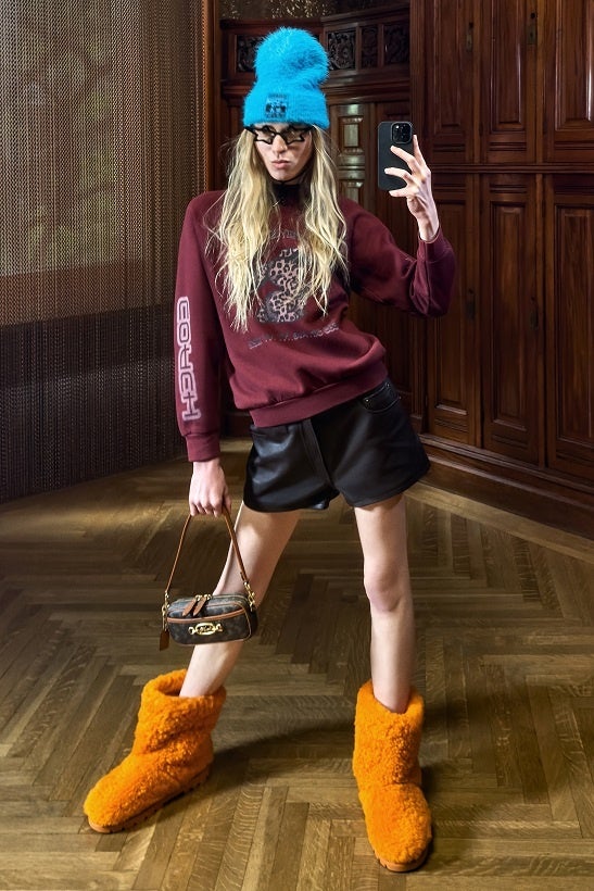 ヴィヴァースは次のように述べています。「今回のウィンターコレクションは、ファッションとは、自分が誰であるかを探求し、それをすべて受け入れ讃えること、という私の信念からインスピレーションを得ています。コレクションを製作するために、私たちはコーチのアーカイブのアイテムをひねり出したり、リル・ナズ・Xの音楽やナイトライフとのつながりからインスピレーションを得たりもしました。昨シーズンのランウェイで発表したヘリテージスタイルを、カラー、テクスチャー、グラフィックをふくらませることで進化させ、私たちが共に大切にしている個性やオーセンティックな自分らしさの表現を讚えるアイテムを作り出しています。」