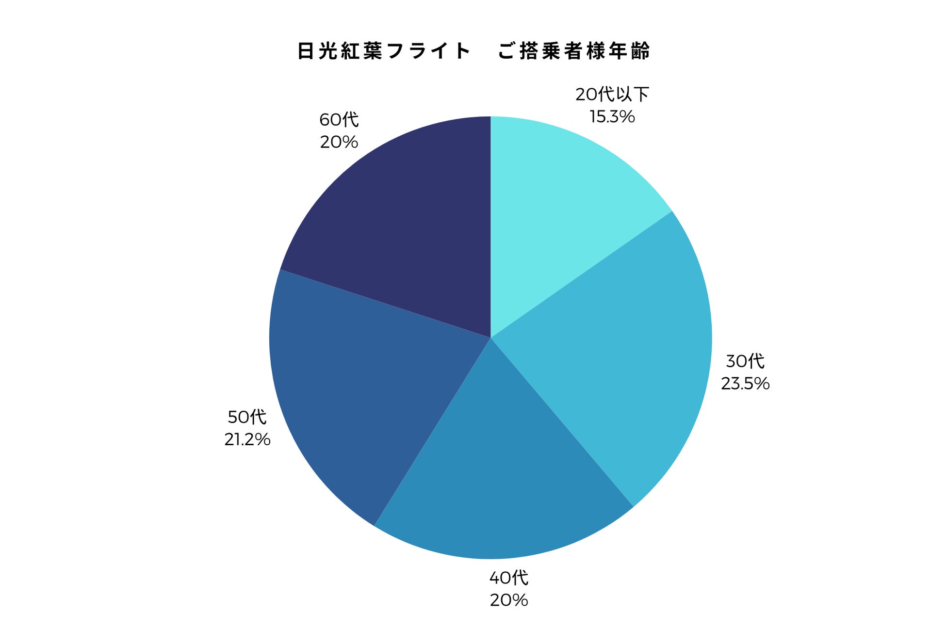 日光でのヘリコプター遊覧は、幅広い年齢層の方々にお楽しみいただいているのが特徴です。日光エリアを観光中に上空を飛ぶヘリコプターを見かけ、その場で検索して予約してくださったお客様も、3組いらっしゃいました。