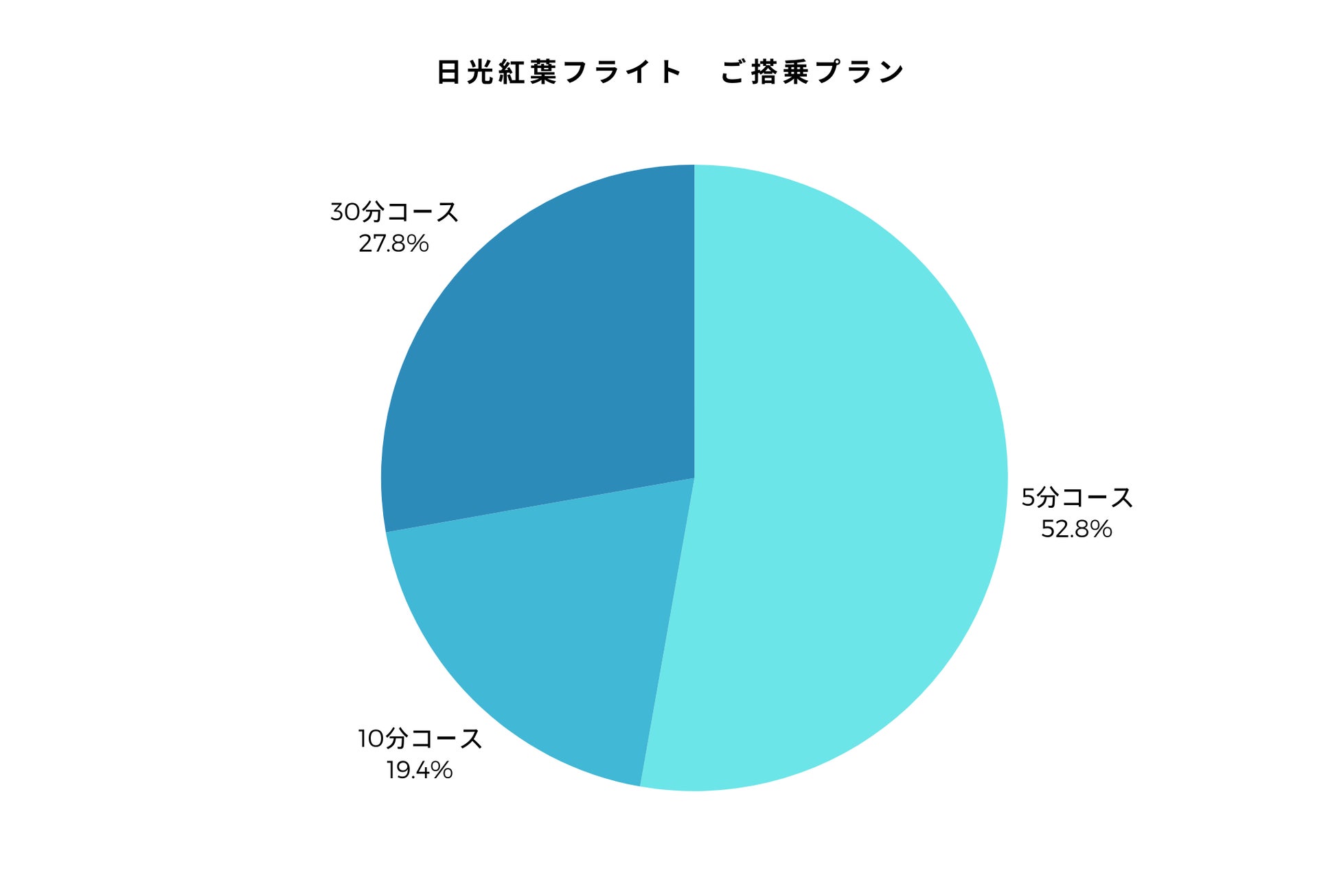 他の地方での遊覧にはない特徴として、事前予約の約9割が30分フライトである点が挙げられます。特に、いろは坂や中禅寺湖の紅葉を楽しむ目的でヘリコプター遊覧をご予約される方が多くいらっしゃいました。