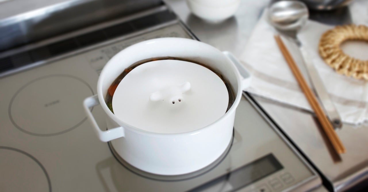 「ブタの落としぶた」は、耐熱・耐冷・耐久性に優れた、やわらかなシリコーンゴム製の落としぶたです。食材の形にうまくなじみ、煮込み料理の際に熱を効率的に循環させます。繰り返し使えて、電子レンジで加熱する際のラップがわりや、ビンなどの開けにくいフタのオープナーとしても使えます。ブタが顔をのぞかせる姿や、鼻から湯気が出る様子がユーモラスでかわいいなど、長くお客様にご支持いただいている製品です。