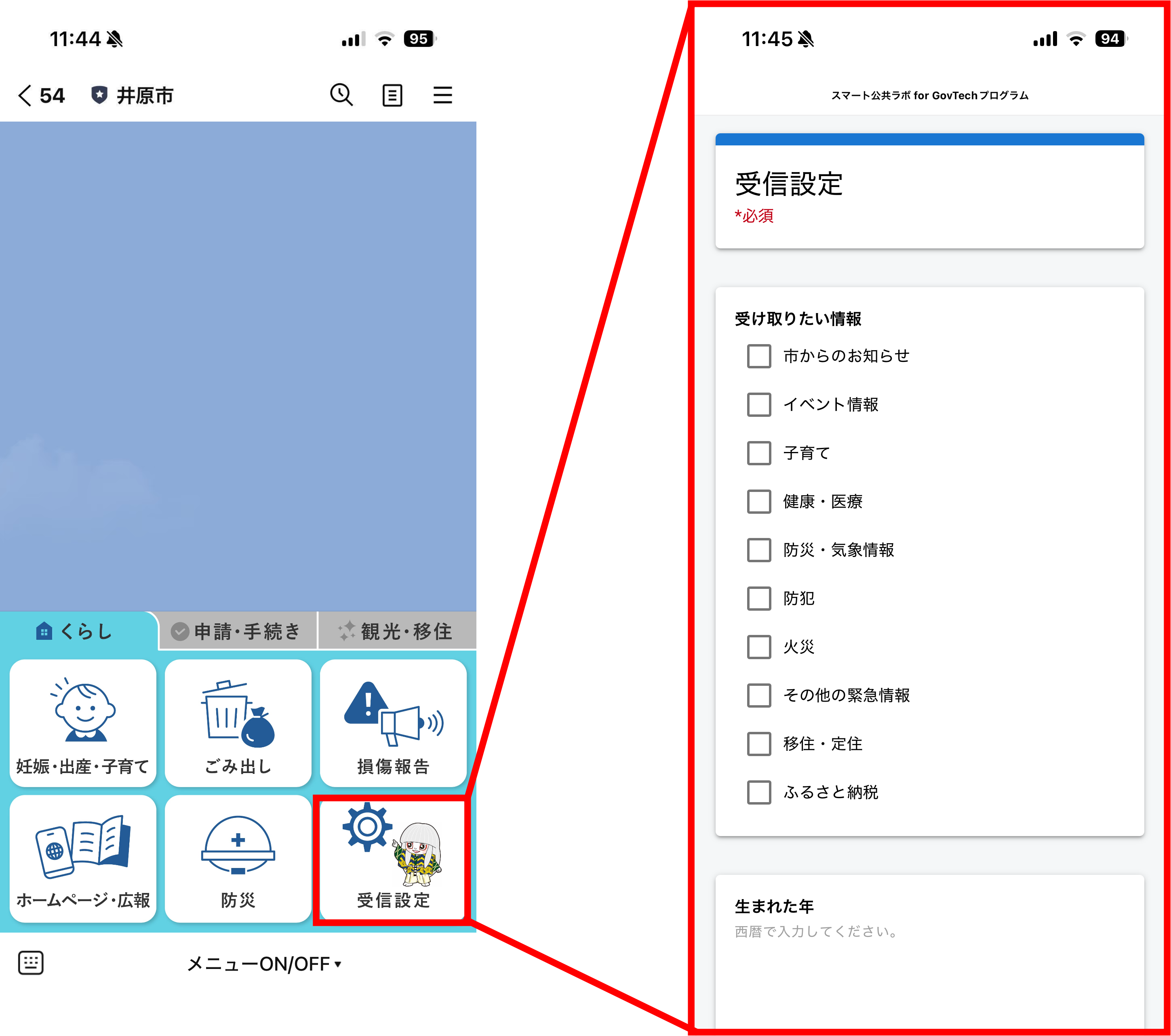 住民の希望に応じた配信だけを届ける「セグメント配信」機能を導入。欲しい配信カテゴリーを「受信設定」に回答することでカスタマイズすることができます。住民がほしい情報に絞って配信ができるため、市からの情報発信がこれまで以上に効果的になることが期待されます。