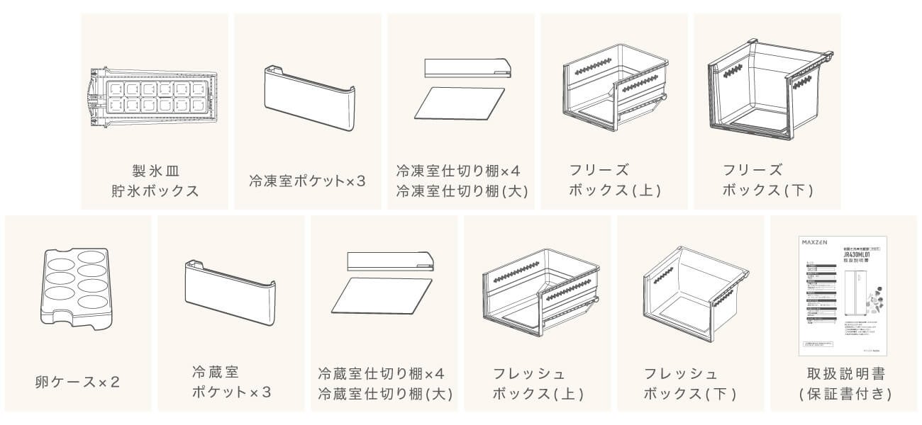 430Lで3~4人家族にピッタリな容量です。特に169Lとたっぷり保存できる大型な冷凍室は、まとめ買いした食材や冷凍食品の保存がしやすく大変便利です。また、庫内収納はシンプルなため、アイデア次第で様々な使い方が可能です。