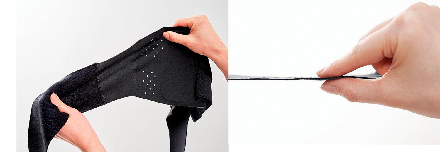 カラダの動きに合わせてシンクロフィットしてくれるので、座る、かがむなどの動作もラクに!