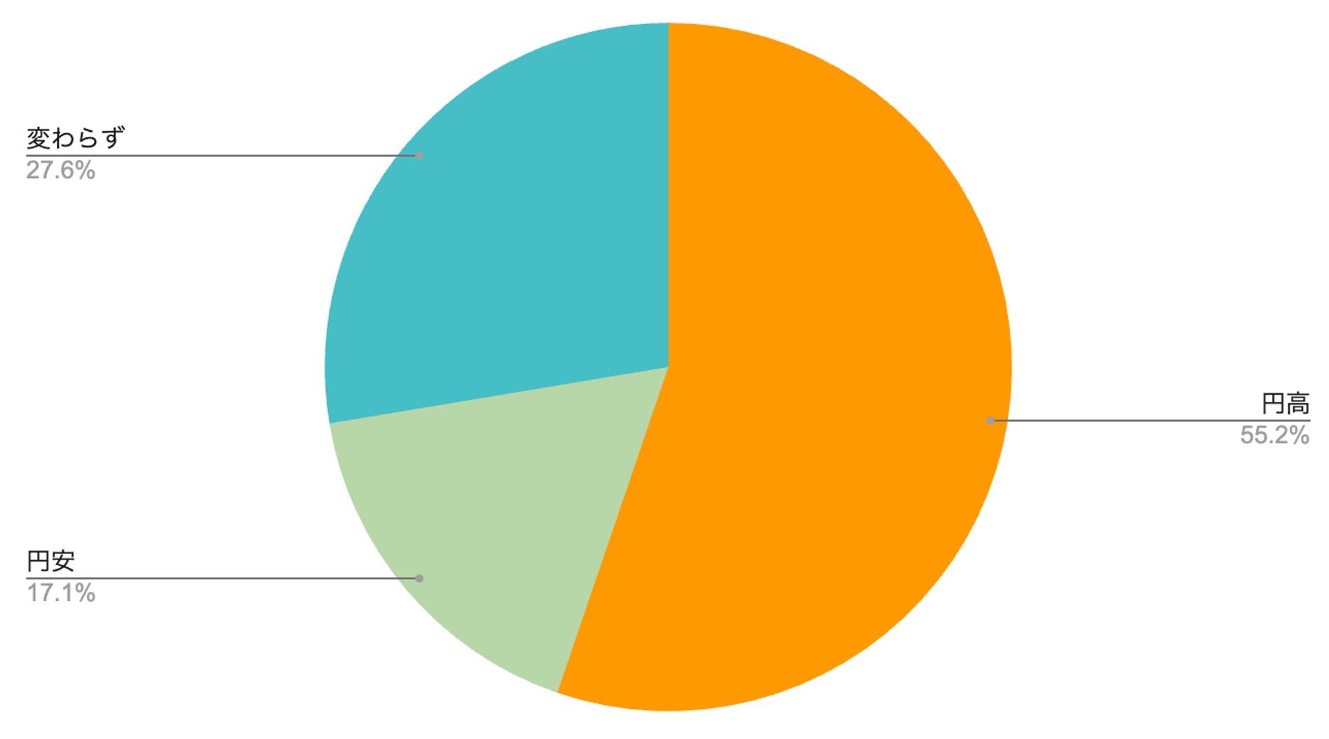 過半数以上の方が「円高」「変わらず」を予想しています。