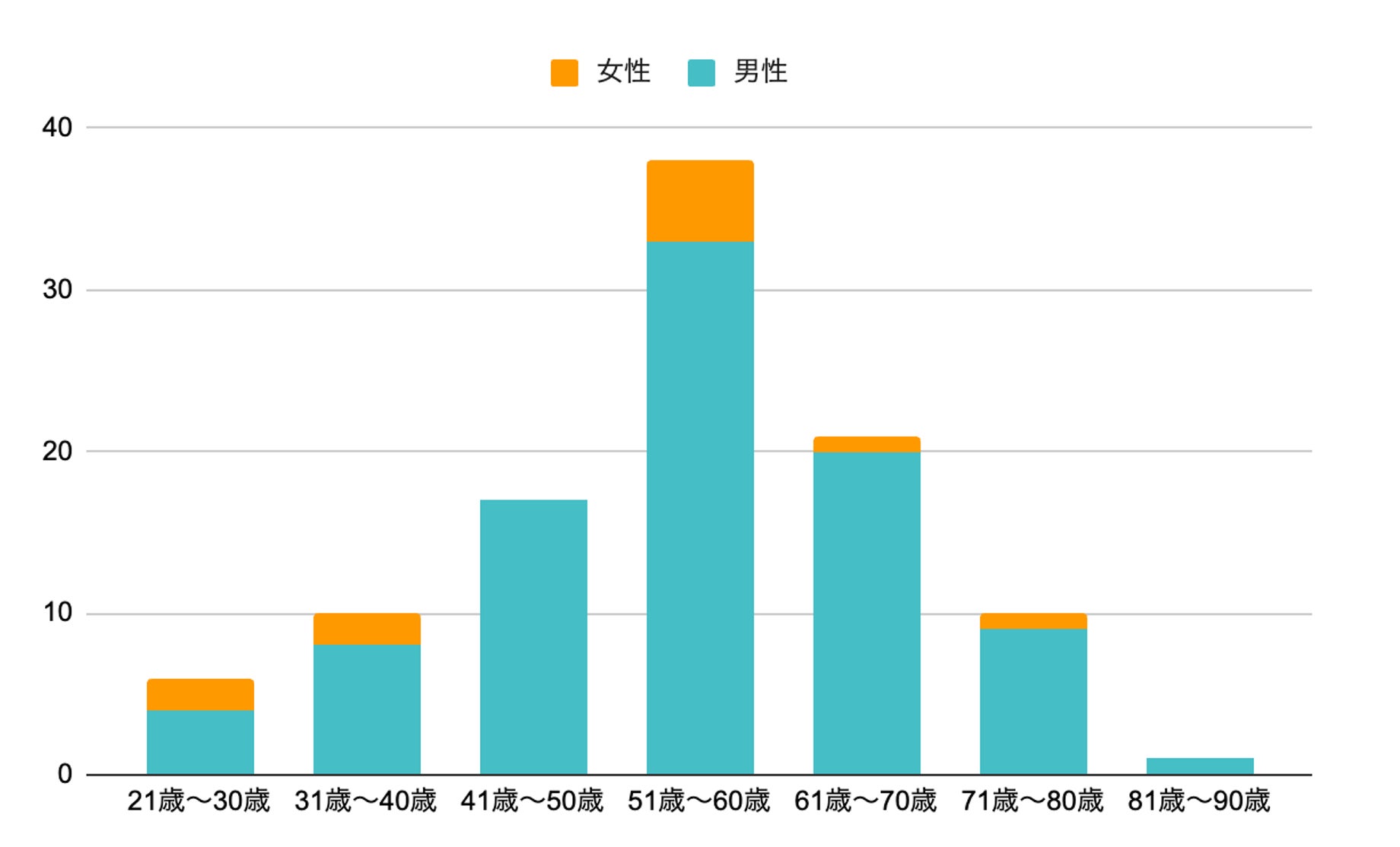 調査対象者数:105人(男性:92、女性:11、未記載2)