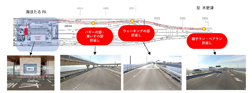 本イベントは、年齢や障がいの有無にかかわらず、普段は走ることのできない東京湾アクアラインをみんなで「走る・歩く・応援する」ものです。種目により、海ほたるをスタート地点に500mから最長1.5kmのコースを自分のペースで楽しむことができます。