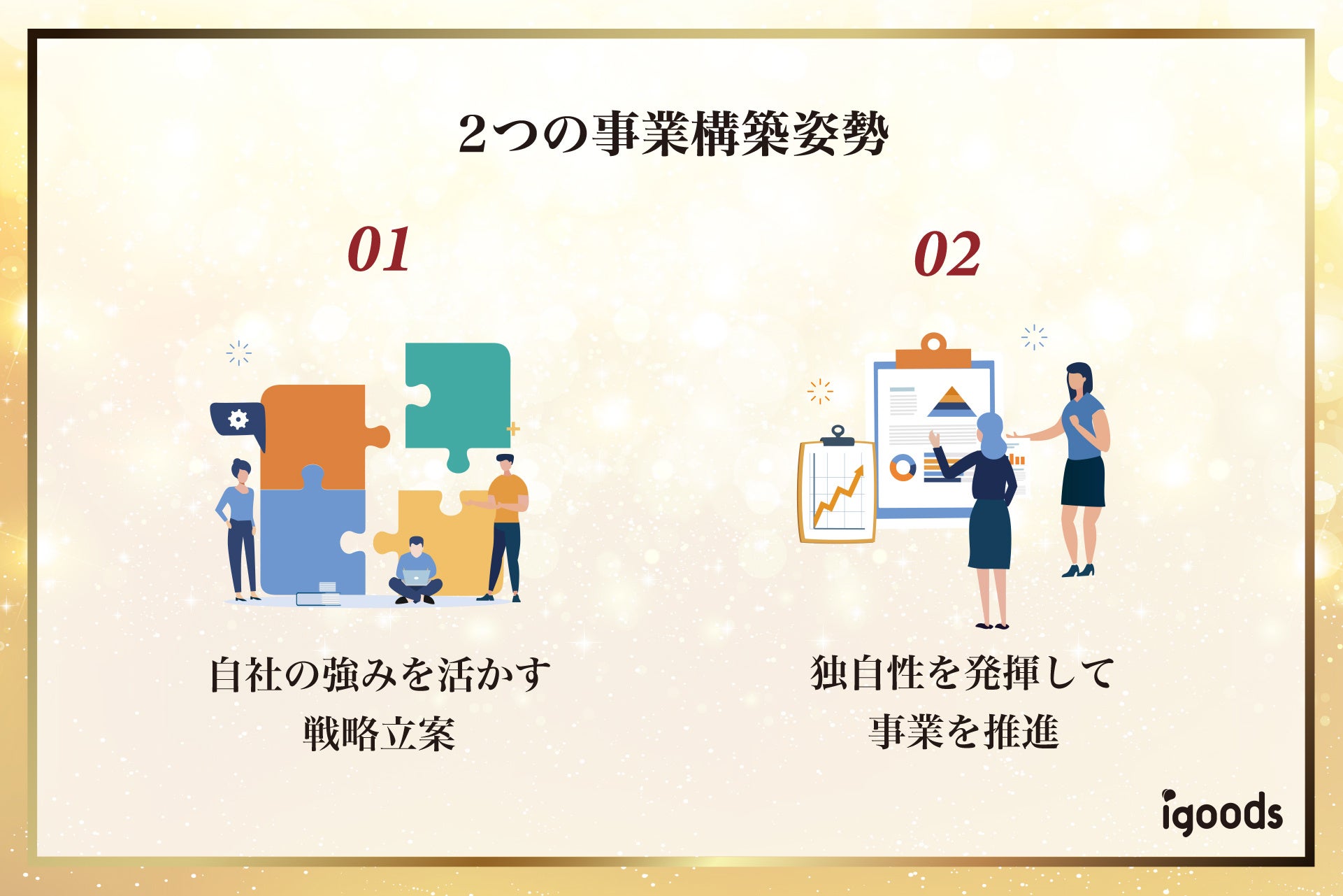事業に関しては、創業以来2つの姿勢を大切にしてきました。①自分たちの強みが活かせるよう慎重に戦略を立てた上で、②社会のニーズに対して迅速に事業を立案。当社だからこそやる意義(独自性)を明確にできた時点で一気に事業推進を図ります。