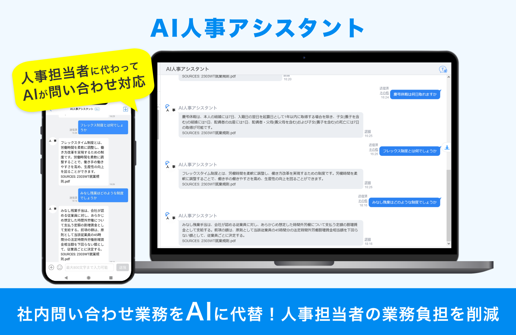 AI人事アシスタントの提供により、人事担当者の社内問い合わせ対応による業務負担を削減するとともに、社員が働きやすい環境の構築を支援し、当社のミッションである「すべての人が自信を持って幸せに働ける世界をつくる」の実現を目指してまいります。