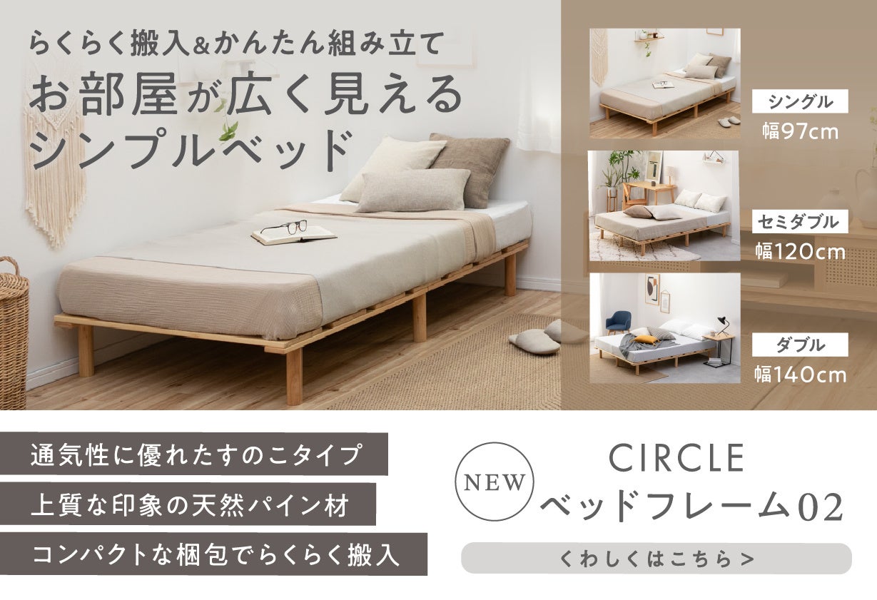 人気のCIRCLEシリーズから、新しいベッドフレームが登場しました。シンプルでお部屋を広く見せてくれるデザインは、ワンルームはもちろん、心安らぐ寝室のコーディネートにもぴったり。