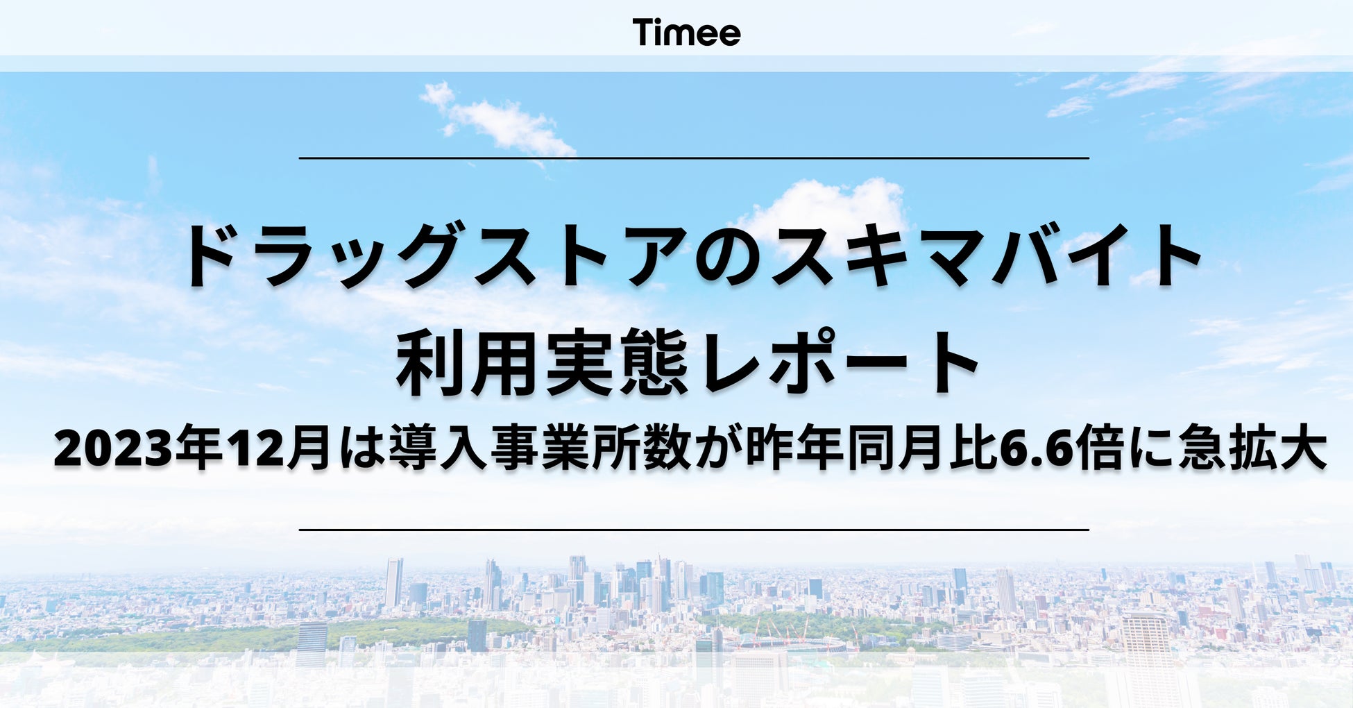 スキマバイトサービス「タイミー」を提供する株式会社タイミー(所在地:東京都港区、代表取締役:小川 嶺)は、インバウンド回復にともない需要が増えているドラッグストア業界でのスキマバイト利用実態レポートを公開しました。