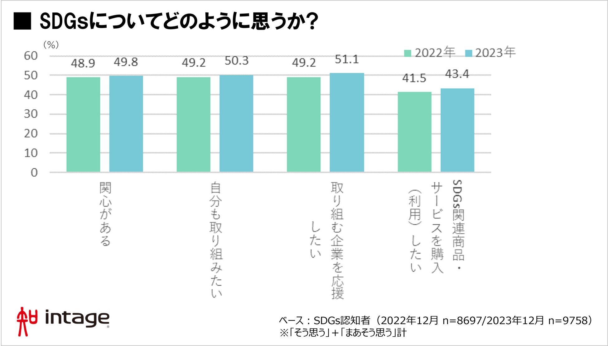 株式会社インテージ(本社:東京都千代田区、代表取締役社長:檜垣 歩、以下インテージ)は、2020年から継続的に実施しているSDGsに関する調査(全国15~69歳が対象)の分析結果を公開します。