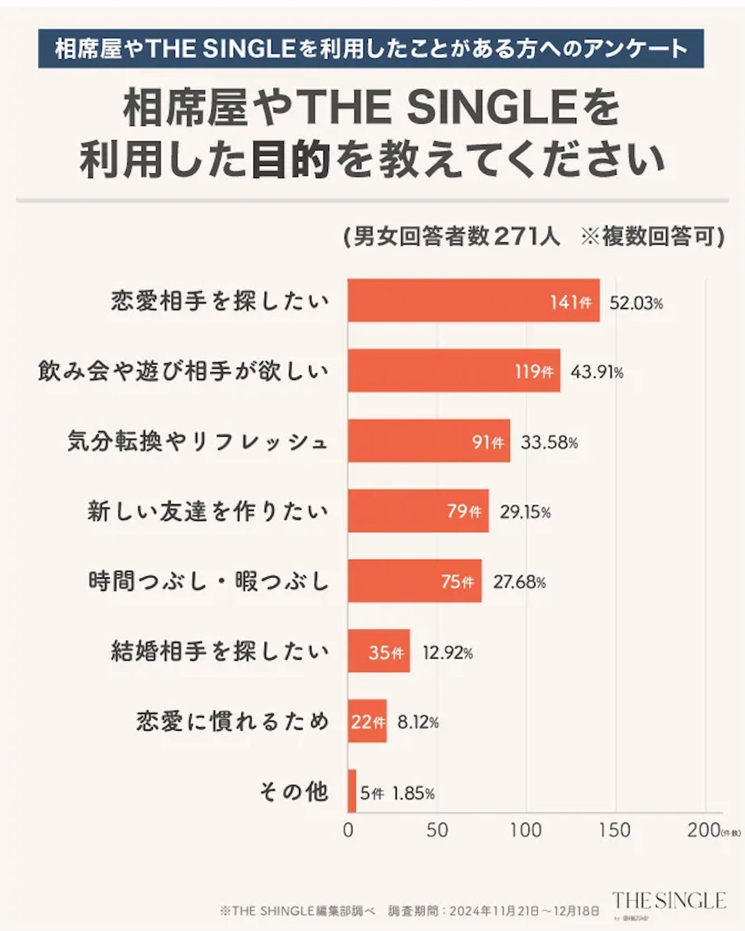 調査対象:相席屋・THE SINGLE等のサービスを利用したことがある男女(男性118名、女性153名)