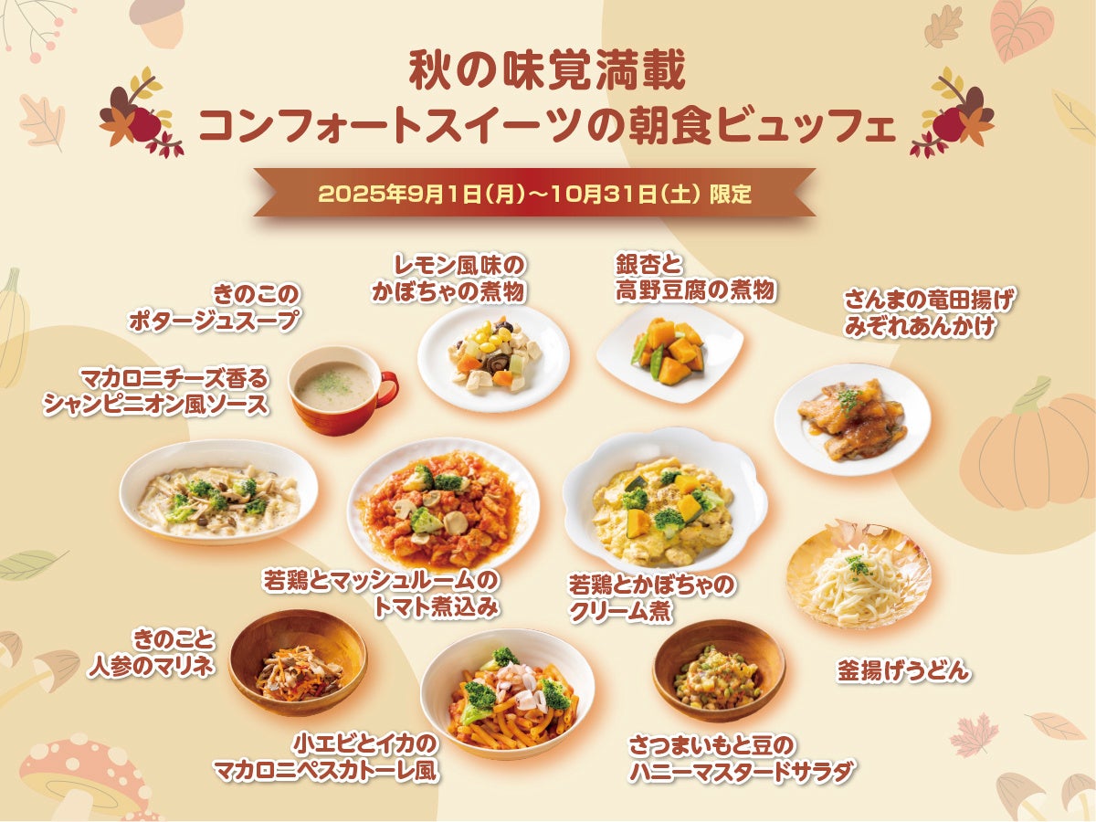 【家族みんなで楽しむ! 秋の彩りを感じるほっこりビュッフェ】秋の味覚のさんま・さつまいも・かぼちゃなど、旬の食材を満喫できる計11種のメニューがコンフォートスイーツ東京ベイの朝食ビュッフェに登場