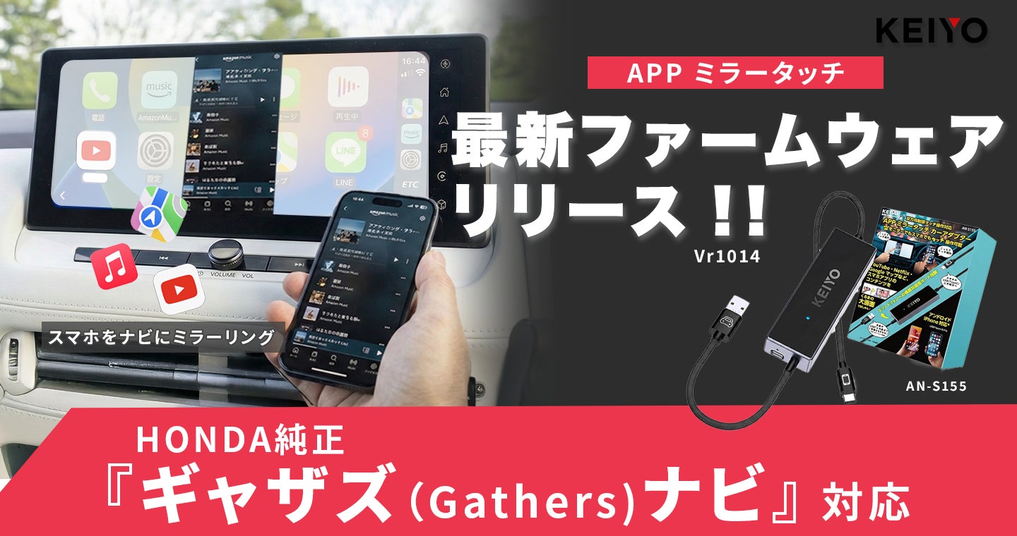 【ホンダ車ユーザー待望】KEIYO「APPミラータッチ AN-S155」が最新ファームウェアでホンダ純正「ギャザズ(Gathers)ナビ」に完全対応!最新FW Vr1014リリース!